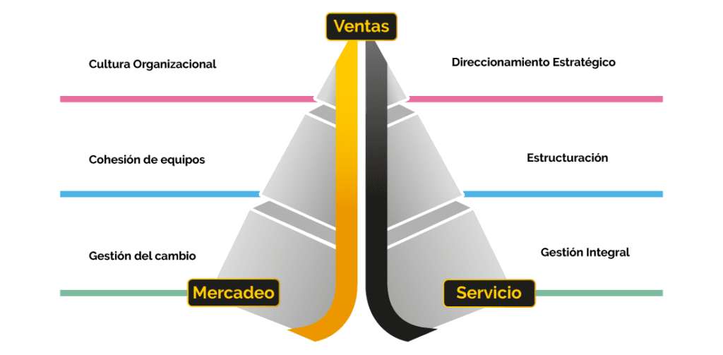 *(Ventas/Sales, Mercadeo/Marketing y Servicio/Service)
